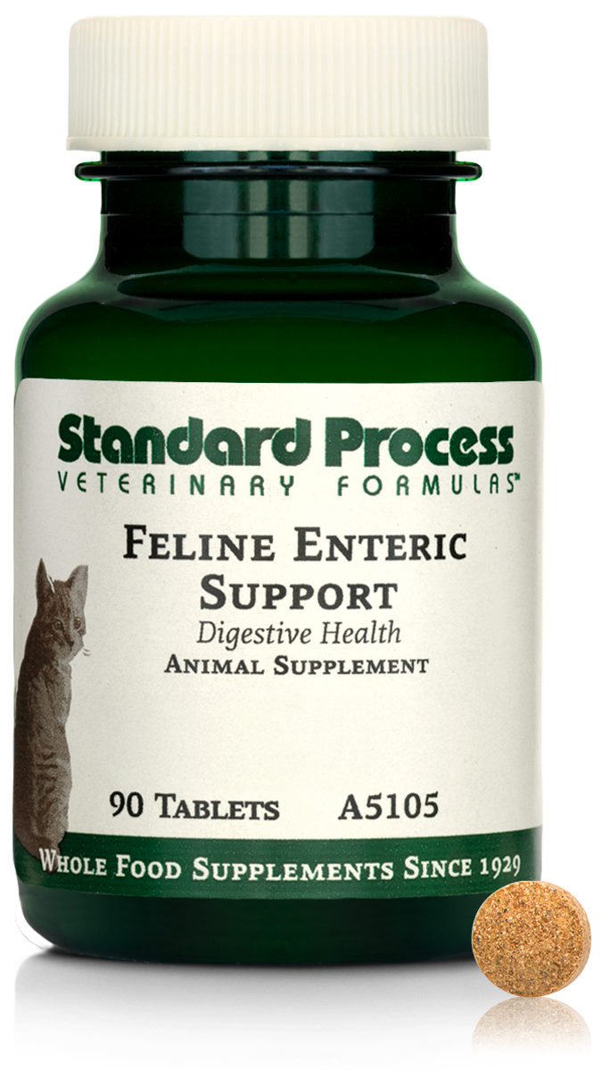 Feline Enteric Support contains a variety of functional foods, both plant and animal, that "feed" the various components of the digestive system to: